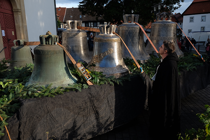 Und dann geschah es eben auch. Wir erinnerten im Gottesdienst, wie oft die „Züchnerglocken“ die Menschen in Seesen daran erinnert haben, dass sie Gesegnete Gottes seien, dass sie getauft sind. Wir erinnerten, dass sie uns immer wieder mahnten, dass unser irdisches Leben endlich ist, dass sie zum Frieden riefen, dass sie die Menschen zu Taufen, Konfirmationen, Hochzeiten und vielen anderen Gottesdiensten einluden, dem Worte Gottes zu lauschen, dass sie jeweils das neue Jahr einläuteten und über die Böllerei hinweg zu hören waren und vieles andere mehr.