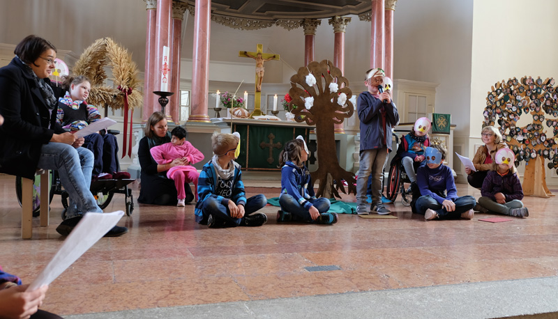 Kurz nach den Herbstferien feierte die Kurparkschule in der Sankt-Andreas-Kirche ihr Erntedankfest. Der Mäuserich Frederik kam dabei ebenso vor wie die Apfelernte oder sogar unser Sonnensystem. Mit viel Liebe war alles vorbereitet und so konnte ein fröhlicher Gottesdienst mit viel Gesang gefeiert werden.