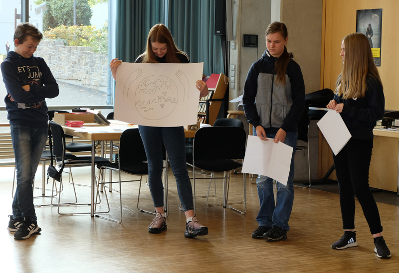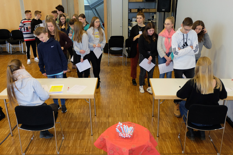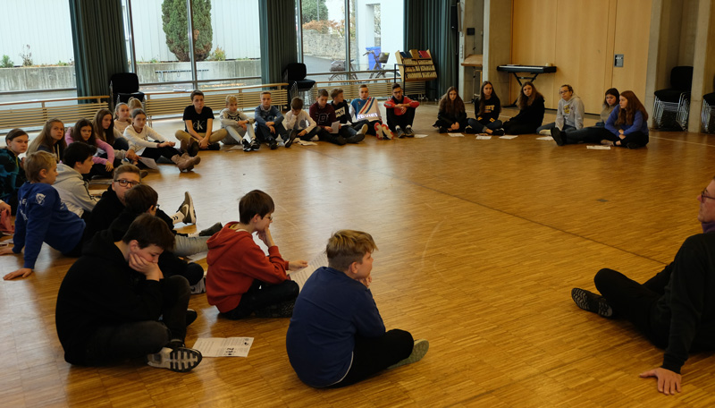Die Proben für das Weihnachtsstück „Deshalb“ von den Kirchenentdeckern und KonfirmandInnen des KFS für den Gottesdienst am Heiligabend um 16:30 Uhr laufen auf konzentrierten Hochtouren. Wenigstens ab und zu gibt es ein paar Pausen.