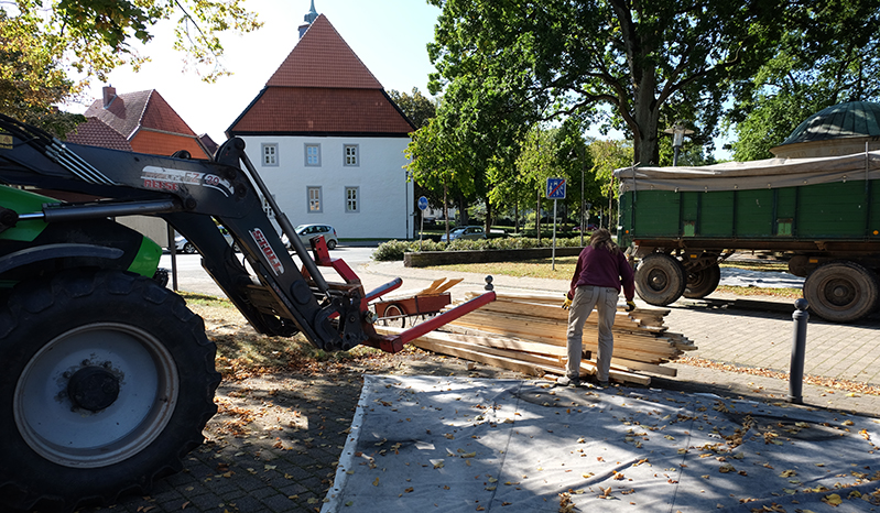 „Pünktlich um 13:17 Uhr kamen die Glocken per Spedition in Seesen an. Auf dem Hof von Möhles wurden sie umgeladen. Der Anhänger muss natürlich geschmückt werden, damit die Glocken beim Sehusafest vorgestellt werden können. Am Samstag werden sie um 15:30 Uhr und 17:30 Uhr erklärt und ebenfalls am Sonntag um 16:30 Uhr und 17:30 Uhr.“