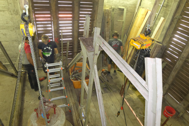 Die Bilder geben einen gewissen Eindruck von der Arbeit, die im Dachreiter verrichtet werden musste.