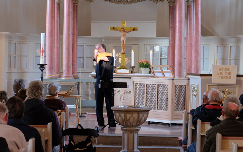 Dies war einer der Kommentare, als das Konzert am vergangenen Sonntag beendet war. Zuvor waren alle Zuhörer*innen von den Klängen der Panflöte verzaubert worden. Matthias Schlubeck zeigte die schier unglaubliche Bandbreite im Klangrepertoire dieses Instrumentes: von melancholisch über wütend treibend hin zum verspielt Spielerischem; von leise, kaum hörbaren Tönen zu über der Orgel liegenden Tönen … und die ließ unser Propsteikantor Andreas Pasemann mit voller Kraft ihren Klang erschallen. Schlubeck und Pasemann harmonierten in einer Spiellaune, als würden sie seit vielen Jahren nichts anderes tun. Herzlichen Dank beiden für dieses einmalige Klangerlebnis.
