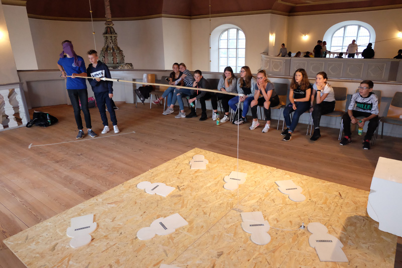 Die KonfirmandInnen der Propstei Gandersheim Seesen trafen sich im Evangelischen Kirchenzentrum und spielten den KONFI-CUP aus. An 15 verschiedenen Stationen konnten die Jugendlichen Geschichten aus dem Leben Jesu hören und selber aktiv erfahren. Beim „Sinkenden Petrus“ ging es z.B. über die Slac-Line und beim Doppelliebesgebot mussten Bälle in die beiden Waagschalen geworfen werden: „Liebe deinen Nächsten“ und „wie dich selbst“.