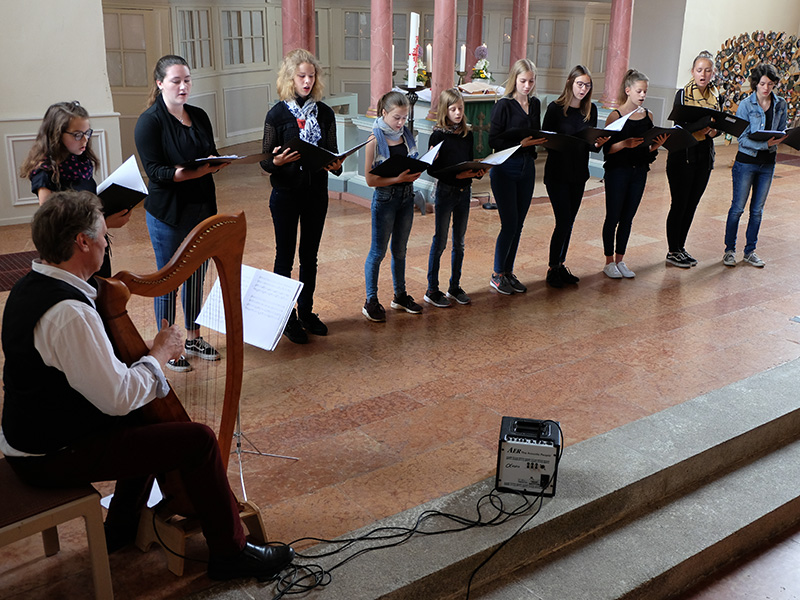 Die Kirchenentdecker trafen sich zu ihrem ersten Gottesdienst nach den Ferien im Raum unterm Dach. Leiten ließen wir uns von dem Vers (1.Sm.16,7) „Ein Mensch sieht, was vor Augen ist; Gott aber sieht das Herz an.“ Erstaunlich ist, dass das Herz in der Zeit, aus der dieser Vers stammt, den ganzen Menschen meinte mit allem, was zu ihm gehört: das ihm Bewusste und Unbewusste, seine Zukunft, seine Gegenwart und seine Vergangenheit. Besonders viel Freude machte es, das Lied „Geh aus mein Herz“ nicht nur zu singen, sondern mit orffschen Instrumenten zu begleiten oder mit Bewegungen darzustellen.