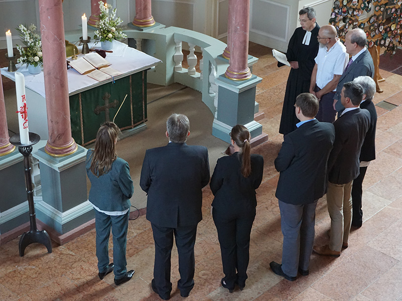 Im Gottesdienst vorher wurde Gerlice Bakker als bisheriges Kuratoriumsmitglied durch Propst Thomas Gleicher verabschiedet. Nach 10jähriger Mitwirkung in der Stiftung zieht ihre Familie wieder in die Niederlandes zurück. Für das leibliche Wohl im Kirchenzentrum sorgte Petra Rotfuchs mit ihrem Team mit einem leckeren Ingwer-Süppchen und einem gut aufgestellten kalten Buffet.